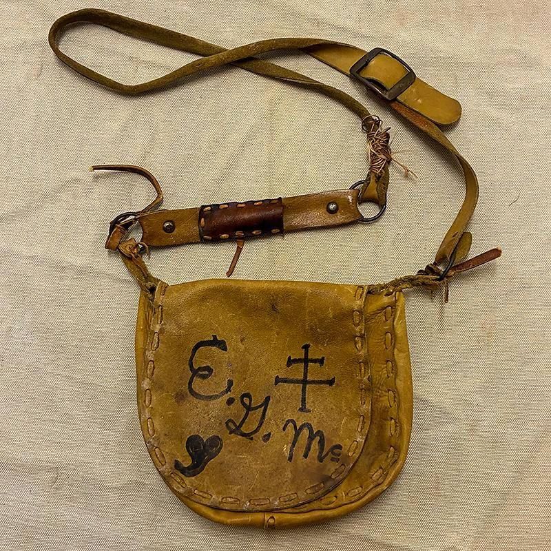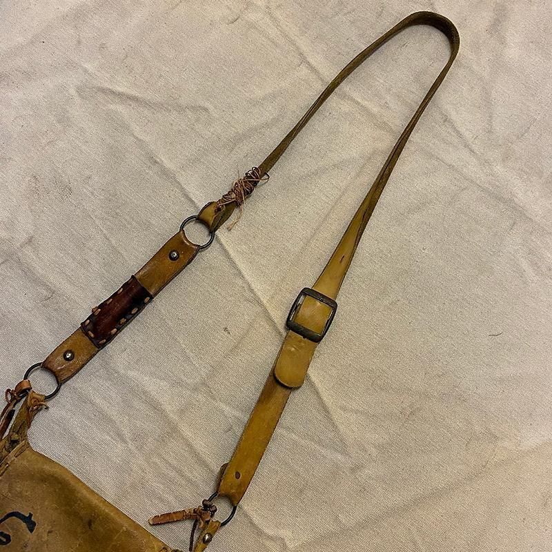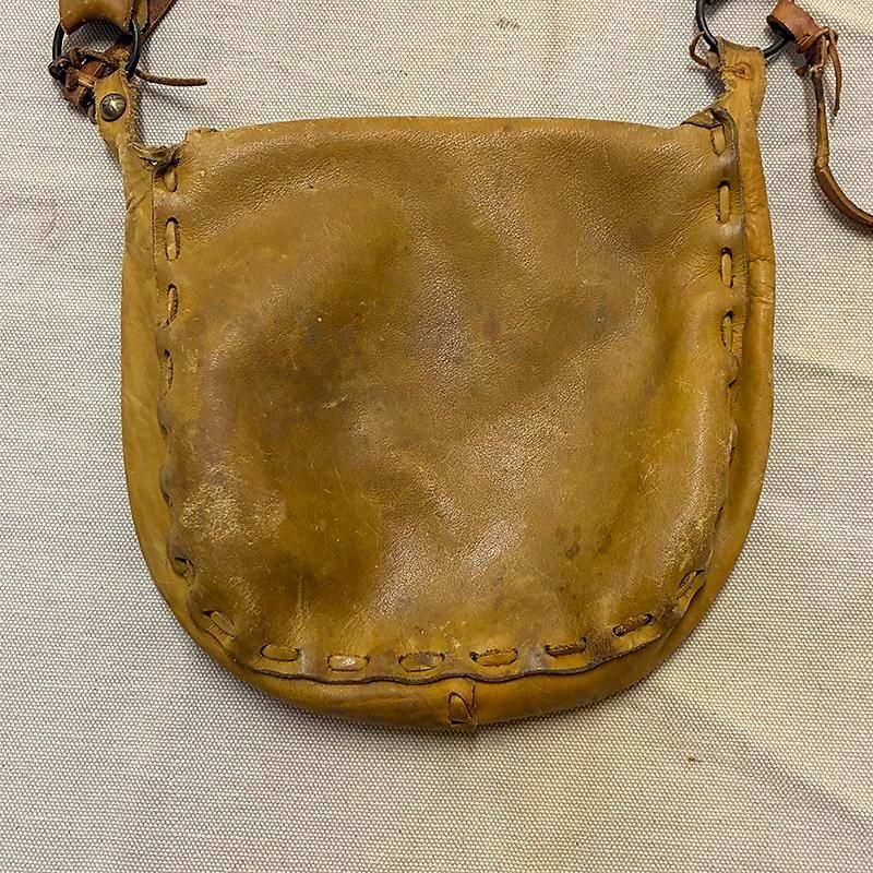 ビンテージのハンドメイド、ライトブラウンレザーバッグです。