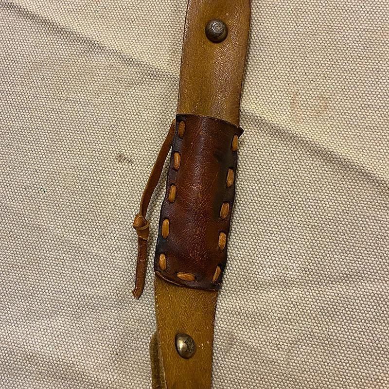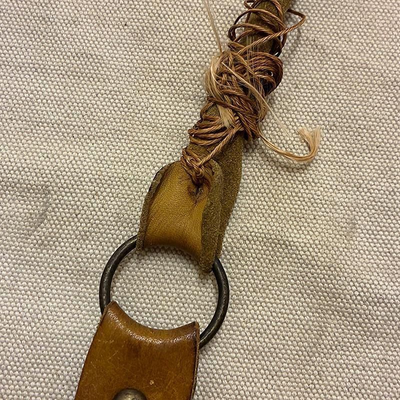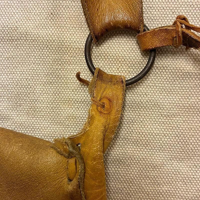 ストラプのハトメが外れている箇所があり、アジのあるリペアが施されています。