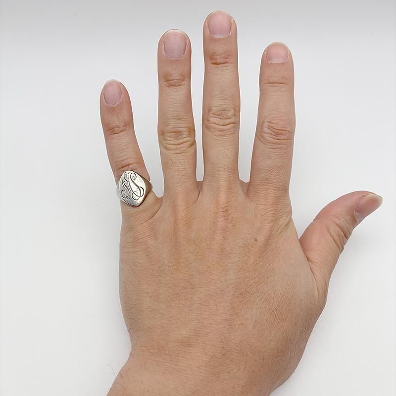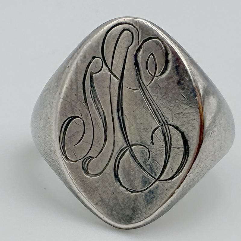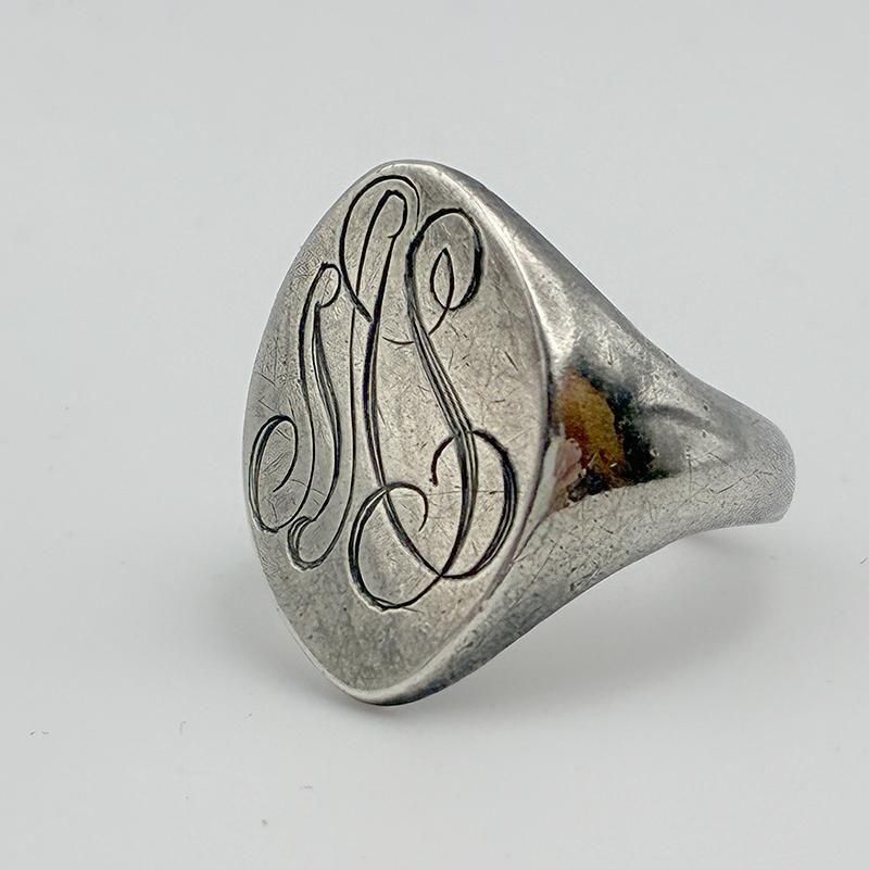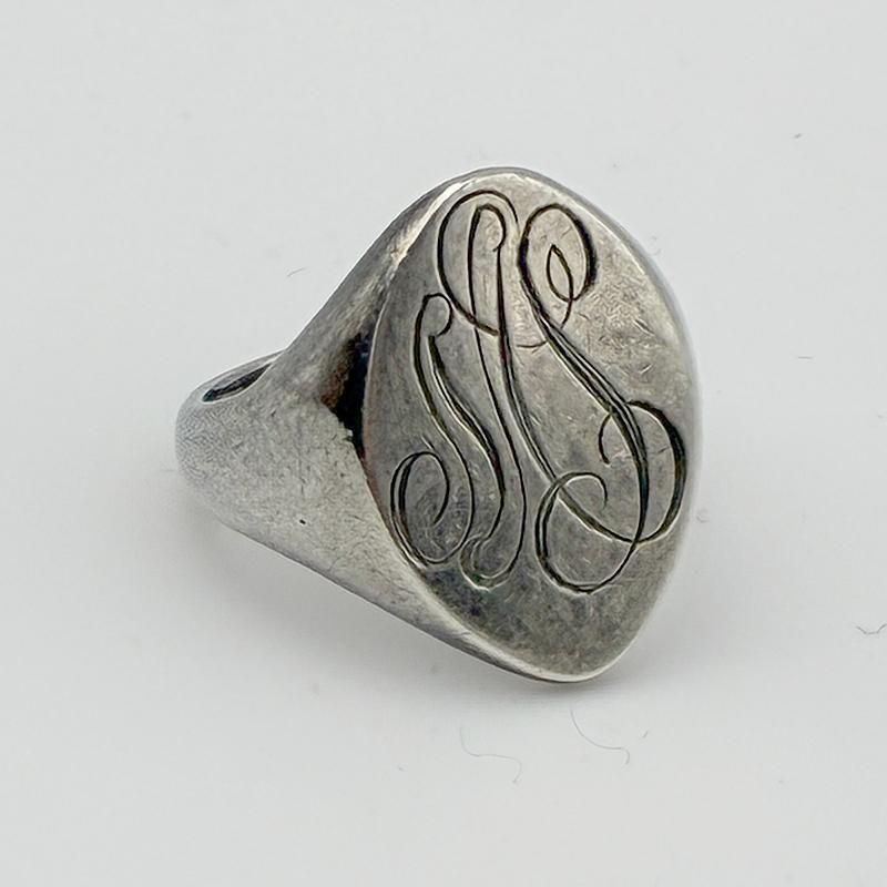 オーバル型のトップにイニシャル RAS がオールドイングリッシュで彫刻されています。