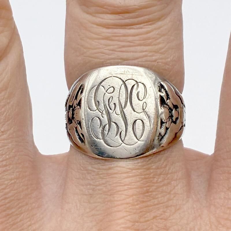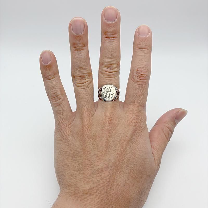オーバル型のトップにイニシャル FPG がオールドイングリッシュで彫刻されています。