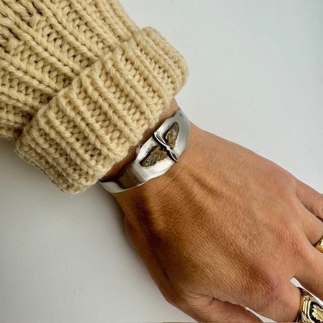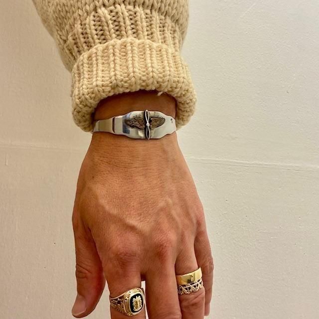官給品である航空科章をステンレス?合金材のバングルに溶接されたハンドメイド品。