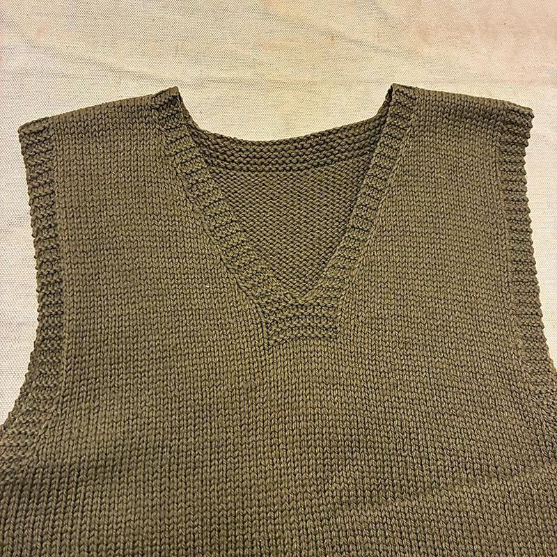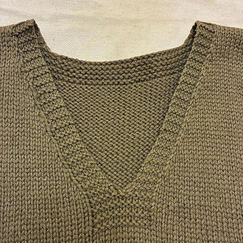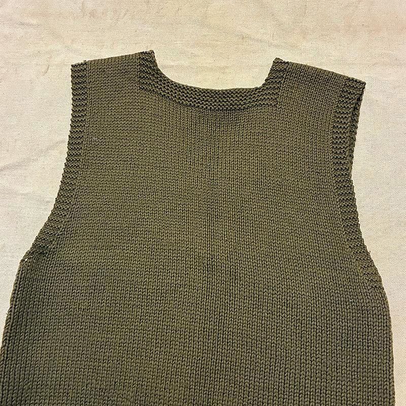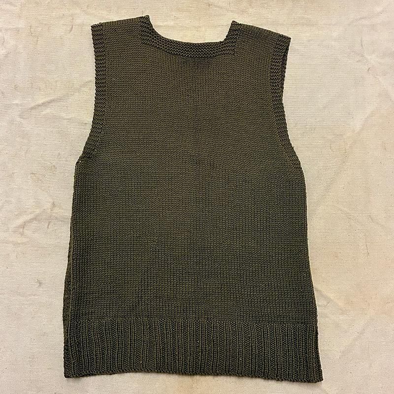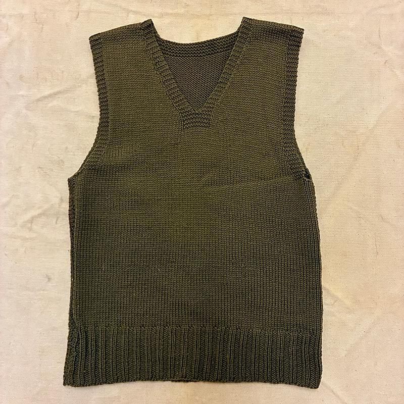 1940年代 WW2頃の手編みのオリーブドラブ ウールベスト。