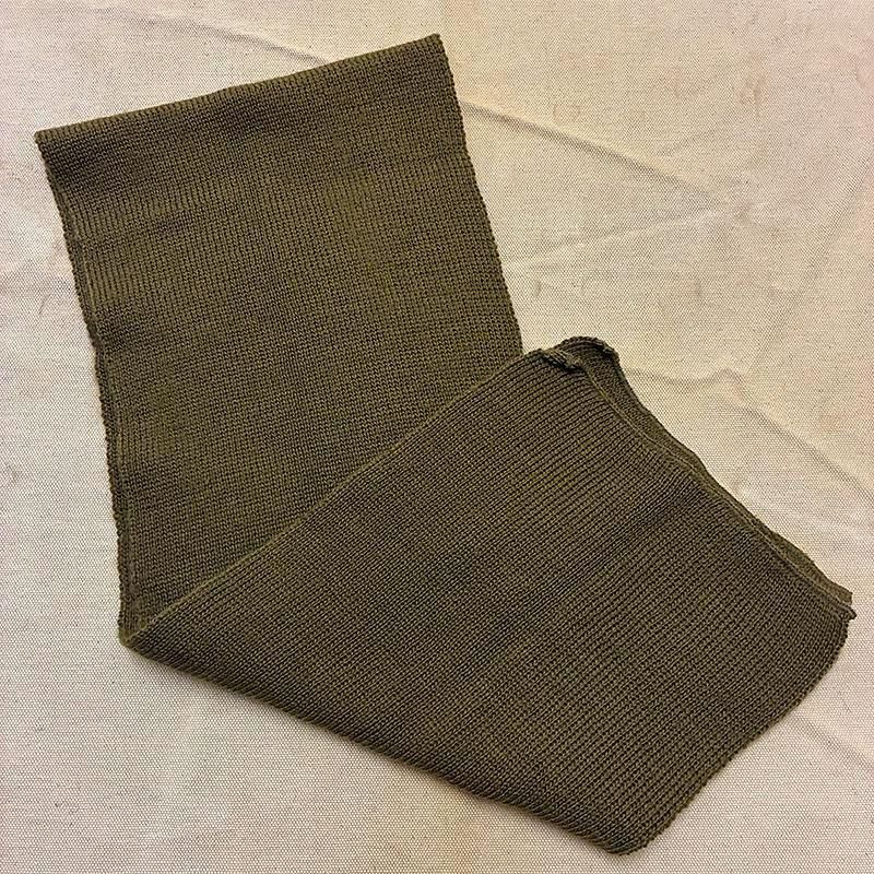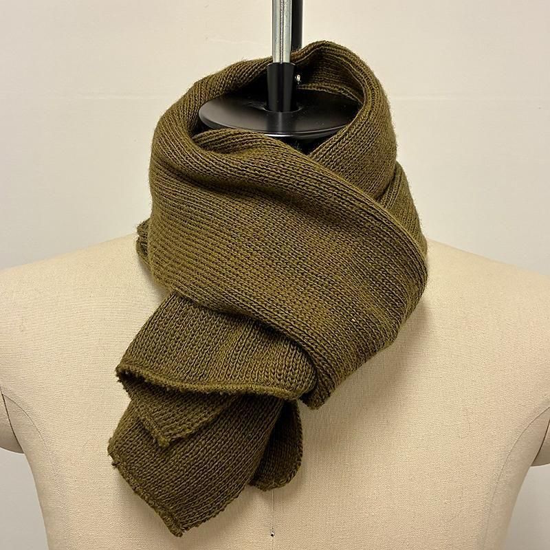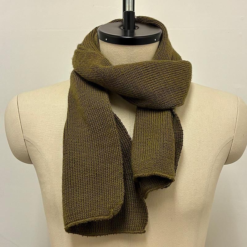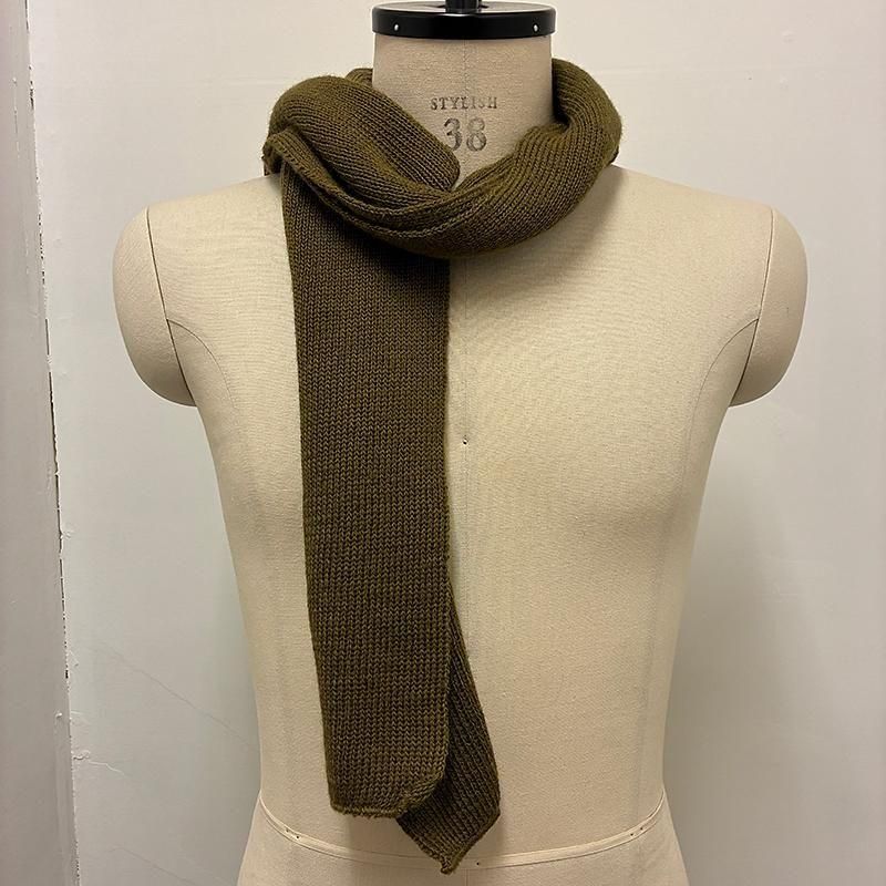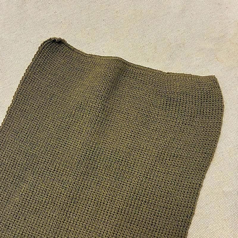 オリーブドラブ色 チューブ仕様ではない平編みのニットです。