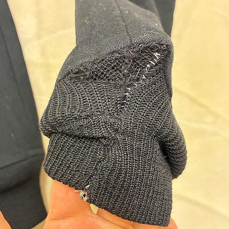 右袖ニットに大きくダメージ、リペアがしてあります。